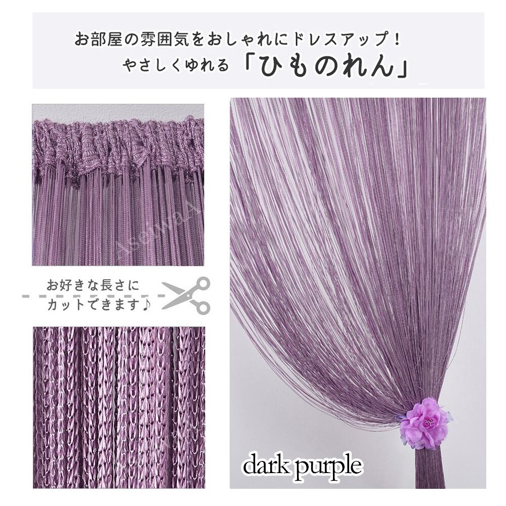 ダークパープル AseiwaA ひものれん 紐のれん ストリングカーテン 目隠し 模様替え 間仕切り ロング丈 インテリア カーテン 幅100cm 長さ200cm カラー24色