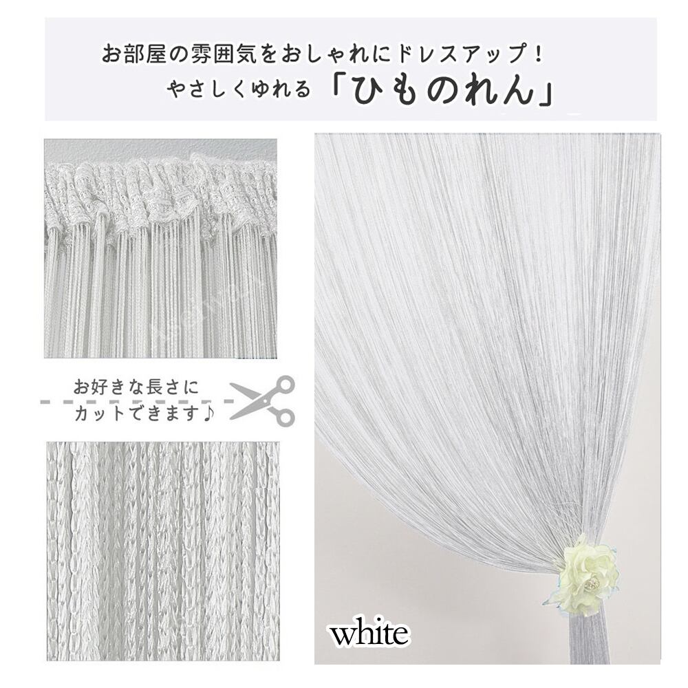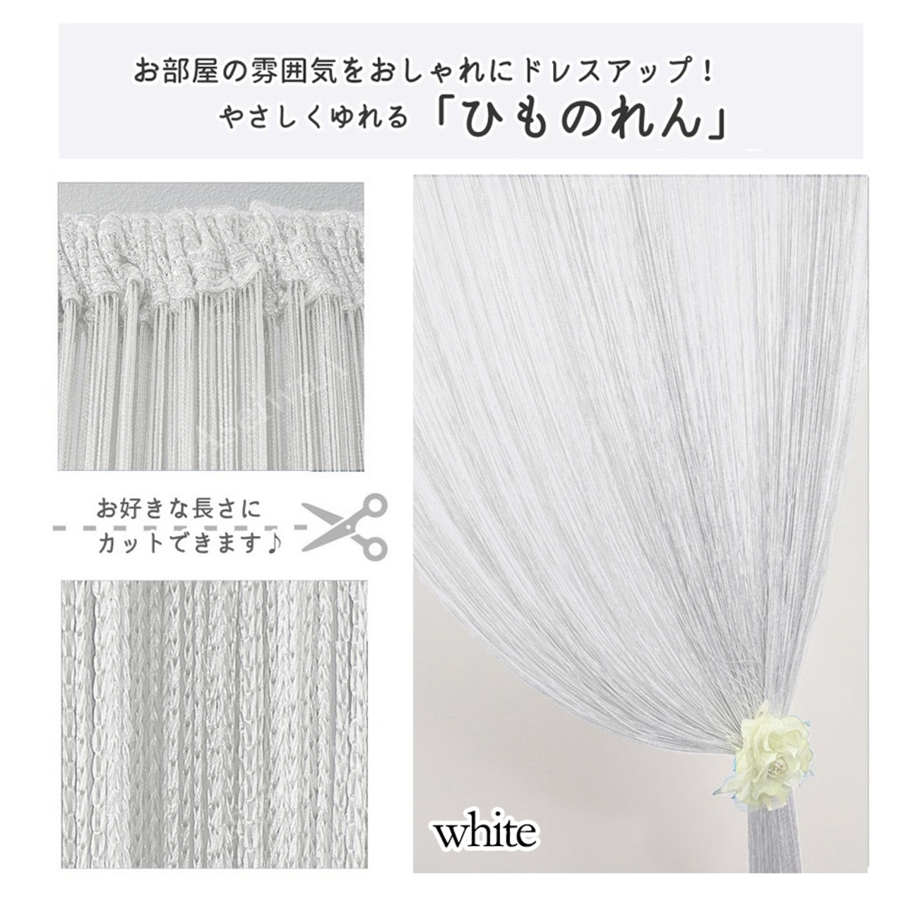 ホワイト AseiwaA ひものれん 紐のれん ストリングカーテン 目隠し 模様替え 間仕切り ロング丈 インテリア カーテン 幅100cm 長さ200cm カラー24色