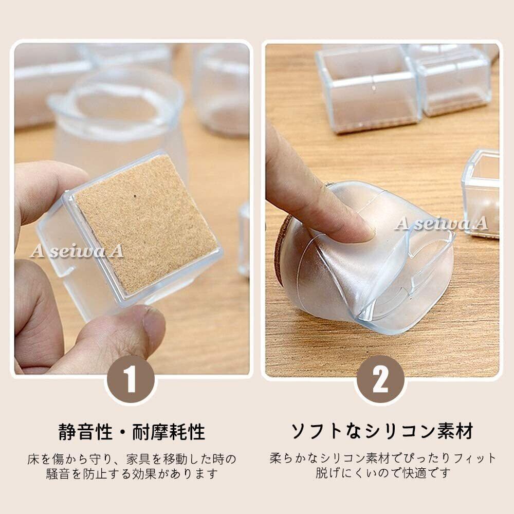椅子などの脚に履かせるだけで簡単装着のキャップタイプ。シリコン素材でぴったりフィットして脱げにくく、快適です。
